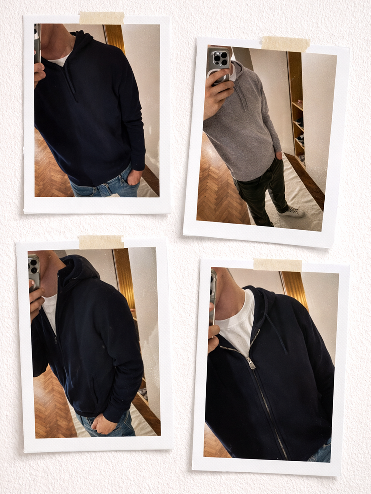 Zip-hoodies i kashmir med ett mer strukturerat uttryck för vardagsbruk. Stickad konstruktion med fokus på passform, komfort och material.
