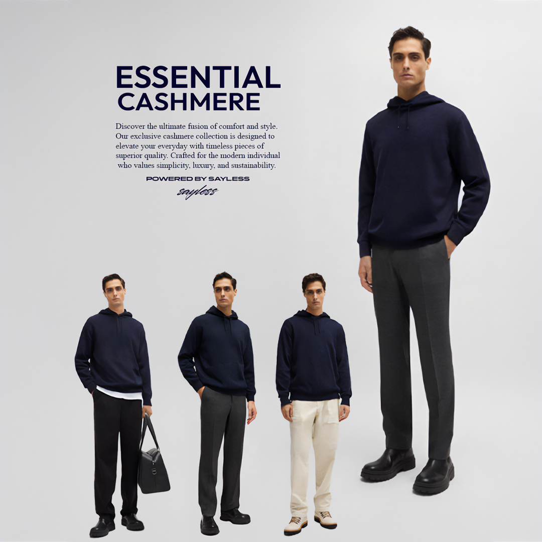 Marinblå Kashmir Hoodie – Klassisk Stil och Lyxig Komfort