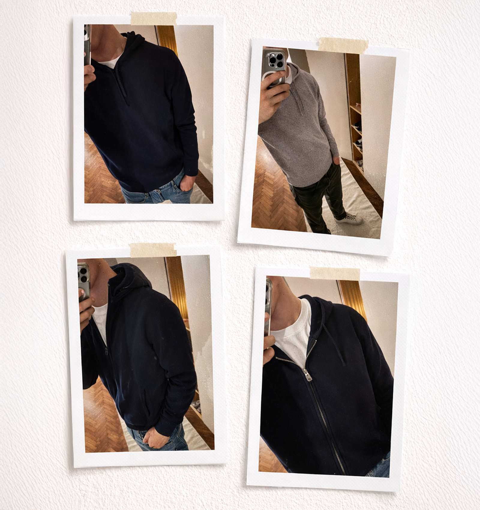Våra kashmir hoodies, kashmir zip-hoodies och cardigans/hybridjackor är framtagna för att enkelt kunna matchas med befintliga plagg i din garderob och fungera som inspiration till ett genomtänkt uttryck.